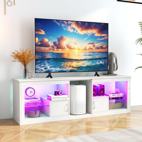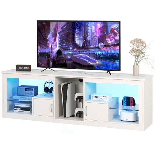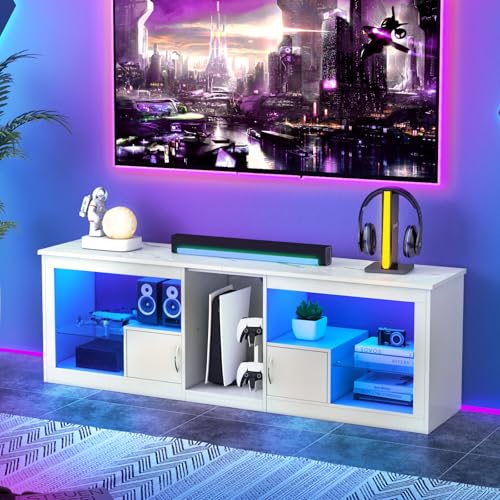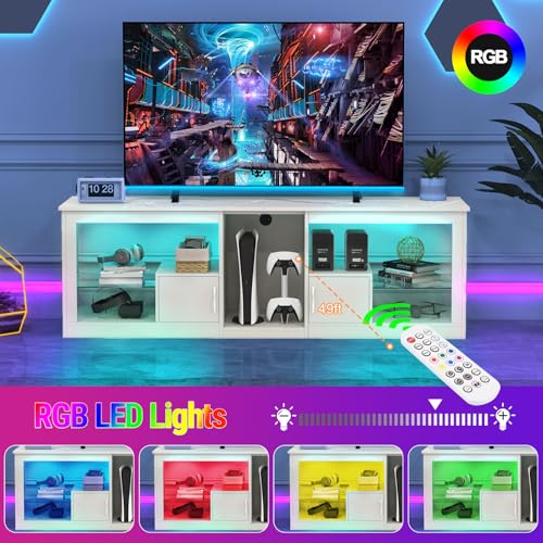 Gaming TV stand with LED Lights: The TV stand comes with an adjustable LED strip with 20 colours, 22 modes and 5 levels of adjustable brightness. You can change the colour and mode of the light by remote control, adding warmth and comfort to your viewing time.