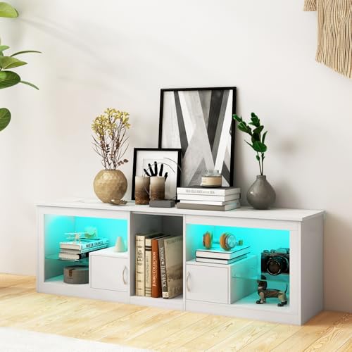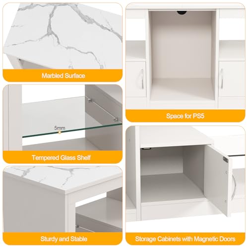 Strong and Durable: Made of high-quality particle board and tempered glass with fine craftsmanship to ensure that the TV cabinet is sturdy and durable, with a load capacity of up to 110lbs, not easy to be deformed or damaged.