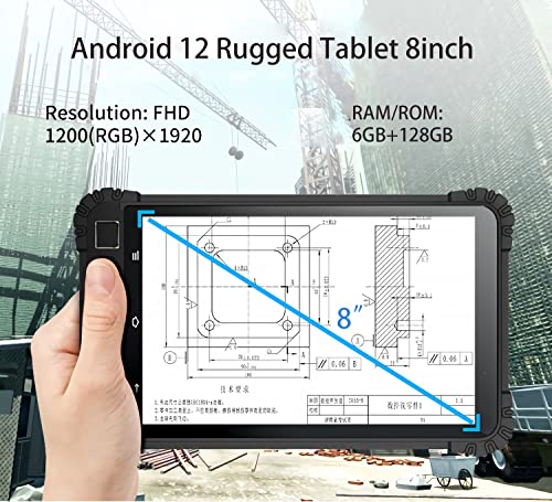 Ultra Rugged Tablet For Field Work: This 8inch display with capacitive multi-touch touchscreen is thin and lightweight at only 1.3 lbs.It is easy to carry and hold in the field.IP68 Waterproof Dustproof features permit this rugged tablet for the tough condition.Built-in Octa-core processor, Android 12,6GB RAM,128GB ROM ,WIFI & BT,13.0 Mega Camera make it for the powerful productivity tool.