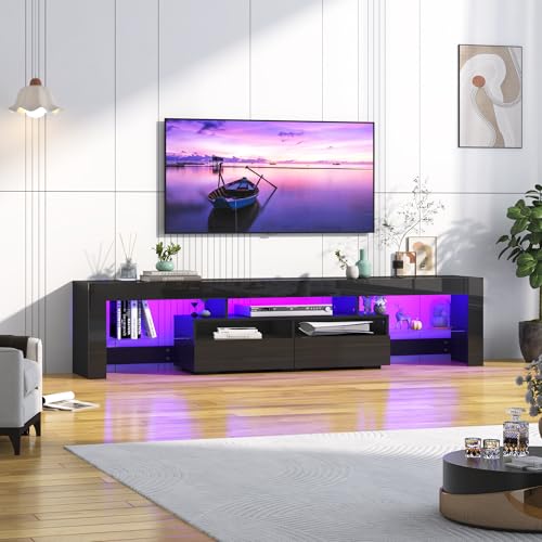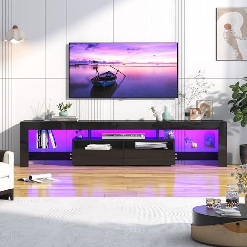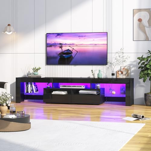 Uspeedy 80.7in TV Stand for 80/85/90 inch TV,Modern LED TV Stand for Living Room,Black TV Stand,High Gloss TV Entertainment Center with Storage Drawer,APP RGB Light,TV Console