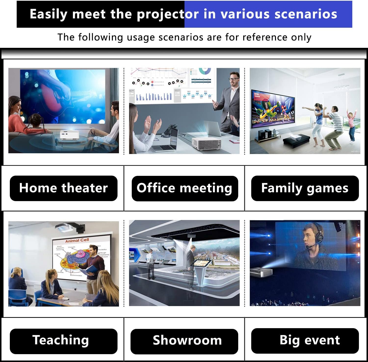 Wide range of application: Business & Education & Home & School,leisure enterainment,watching movies,watching animation,watching ball games,playing games and so on.