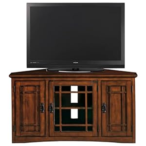 Leick Home 82385 Solid Wood Mission Corner TV Stand for 50″ TVs, Living Room Entertainment Center with Three Doors and Storage Shelves, Mission Oak