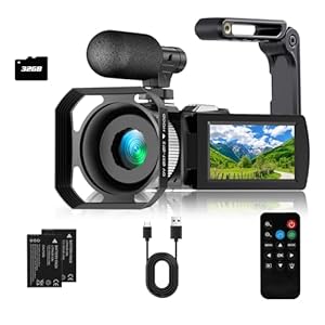 4K Video Camera Camcorder, Video Recorder 4K 60fps/48MP Photo/3″ Large Flip-Screen/External Microphone/Lens Hood/2 Batteries/SD Card/Camera Bag