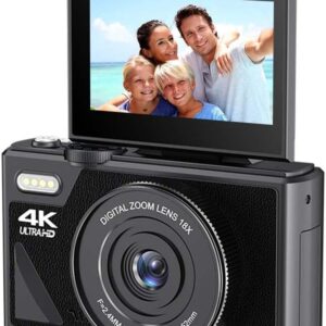 64MP Digital Camera for Photography and Video: 4K Vlogging Camera for YouTube with 3” Flip Screen and 32GB TF Card, 16X Digital Zoom Digital Camera for Gift (Black)